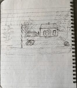 In 1965, nearly 70 years old, she visited her granddaughter, Sherla on Long Island. Sherla had had just given birth to her second child, and grandma came to help her take care of her young son while she was in the hospital and her husband was away on business. During that two-week visit, she learned a new hobby – painting! Not long after, she made a sketch of the cherished homestead, then brought it to life on canvas.